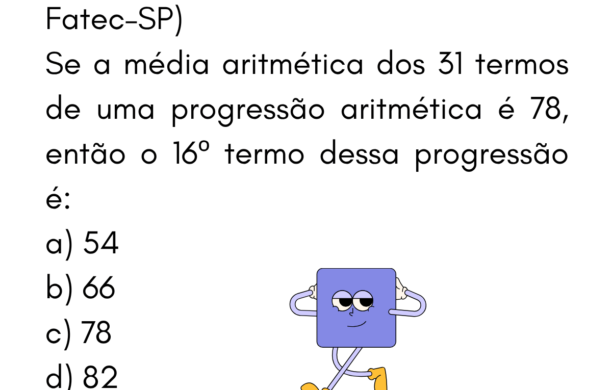 Continue lendoPA — Questão 8 (Fatec-SP) • 16º termo dado a média dos 31 termos Questão 8 — 16º termo quando