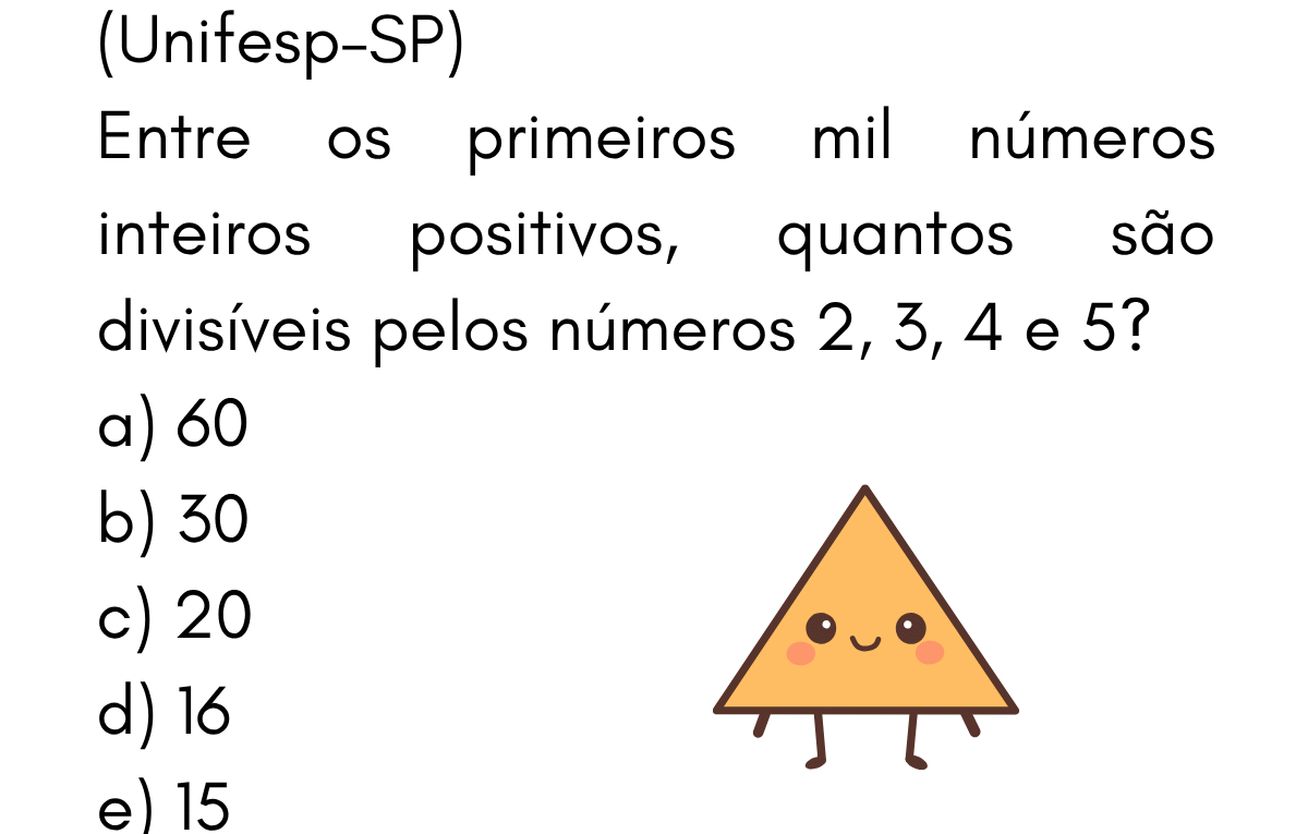 Continue lendoPA — Questão 9 (Unifesp-SP) • Quantos são divisíveis por 2, 3, 4 e 5? Questão 9 — Divisíveis por