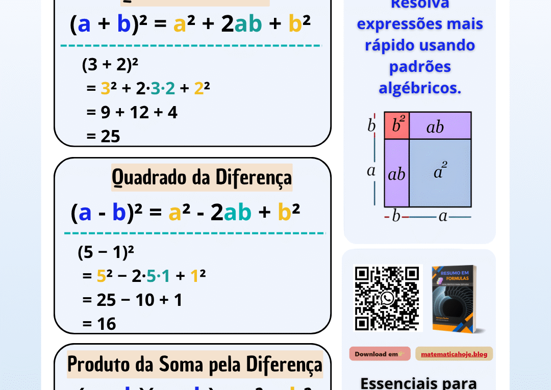 Continue lendoProdutos notáveis: como aplicar e acertar na prova? Os produtos notáveis são padrões algébricos que evitam contas longas e erros