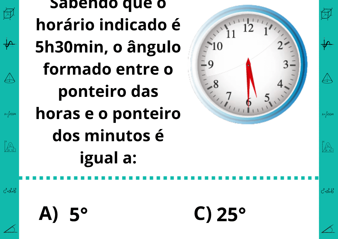 Continue lendoMostrar solução passo a passo 📌 Solução comentada Ideia geral: vamos calcular a posição de cada ponteiro (horas e minutos)