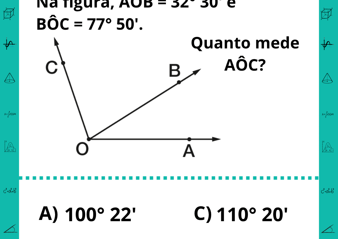 Mostrar solução passo a passo 📌 Solução passo a passo Os valores fornecidos são: \[ AÔB = 32^\circ 30′ \]