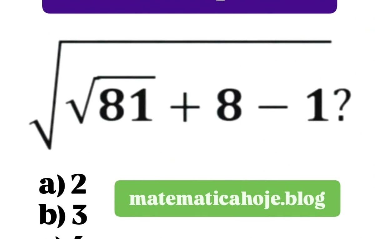 Continue lendoMostrar solução passo a passo 📌 Solução comentada A expressão que aparece na imagem pode ser escrita assim: \[ \sqrt{\sqrt{81}