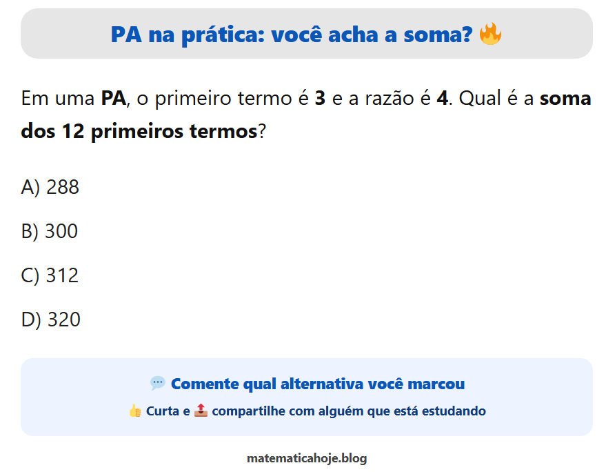 Continue lendoProgressão Aritmética: você consegue achar a soma sem travar? A Progressão Aritmética (PA) aparece muito em listas e provas porque