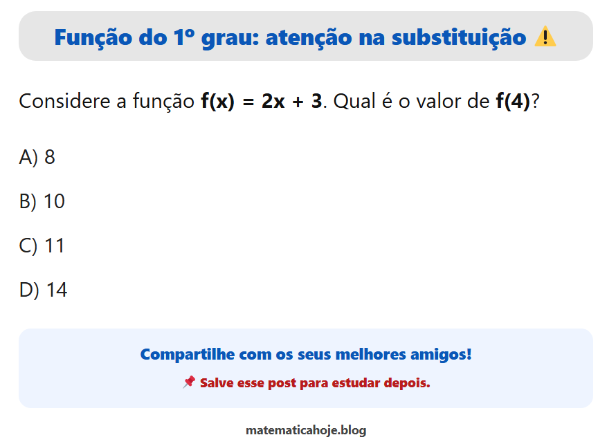Continue lendoFunção do 1º grau: cuidado na substituição Em funções do 1º grau, o valor de y é obtido substituindo x