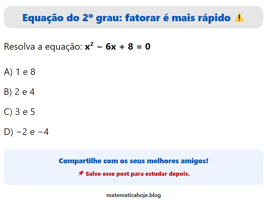 Continue lendoEquação do 2º grau: resolvendo sem Bhaskara Em equações do 2º grau, quando o termo constante é pequeno, vale a