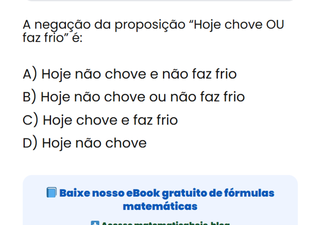 Poucos lembram disso em lógica: qual é a negação correta? Em lógica, a negação do “OU” exige cuidado. Pela lei