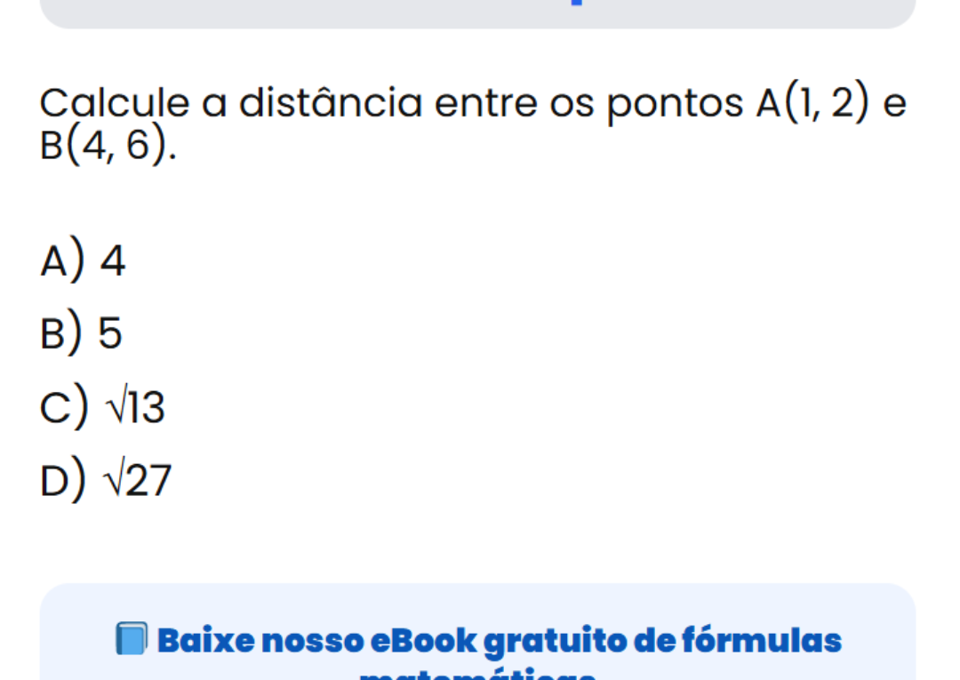 Continue lendoVocê lembra a fórmula da distância entre dois pontos? Distância entre dois pontos é um conteúdo essencial de Geometria Analítica.