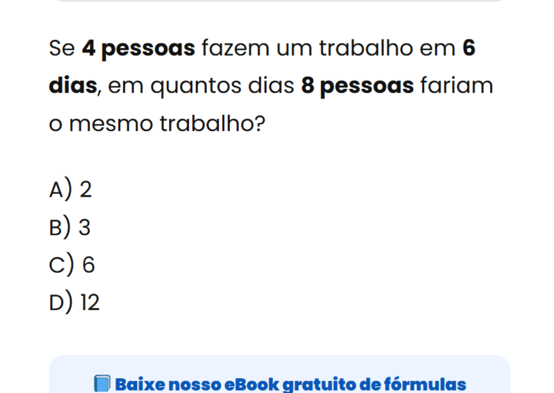 Continue lendoQuantos dias? Essa pegadinha de razão inversa derruba muita gente! ⏱️ Em situações de trabalho colaborativo, aumenta-se o número de