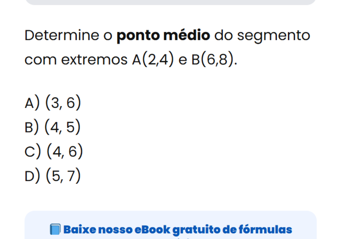 Continue lendoVocê acerta o ponto médio desse segmento? 📍 Para calcular o ponto médio entre dois pontos, fazemos a média das