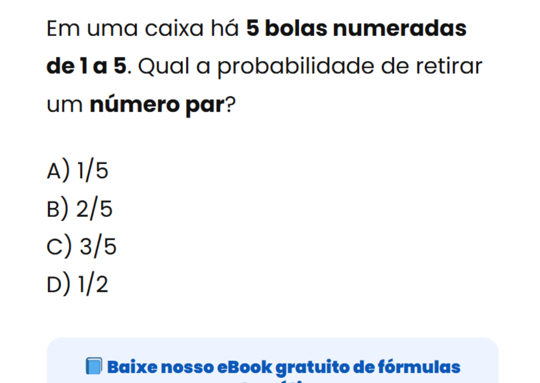 Continue lendoVocê acerta essa de probabilidade? 🎲 Em probabilidade, analisamos o número de casos favoráveis sobre o número de casos possíveis.