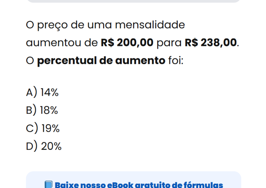 Continue lendoVocê sabe calcular esse aumento percentual? 💰📈 Em problemas de aumento percentual, comparamos o valor do aumento com o valor