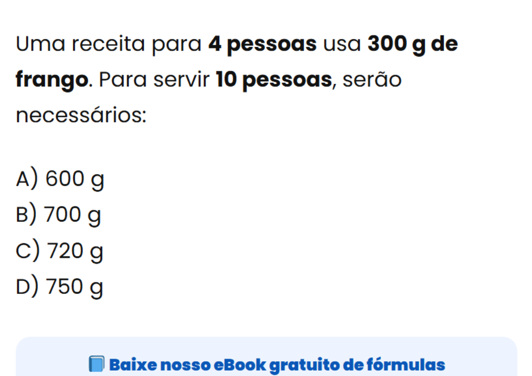 Continue lendoQuantos gramas de frango são necessários? 🍗📏 Em situações do dia a dia, quando as grandezas crescem na mesma proporção,