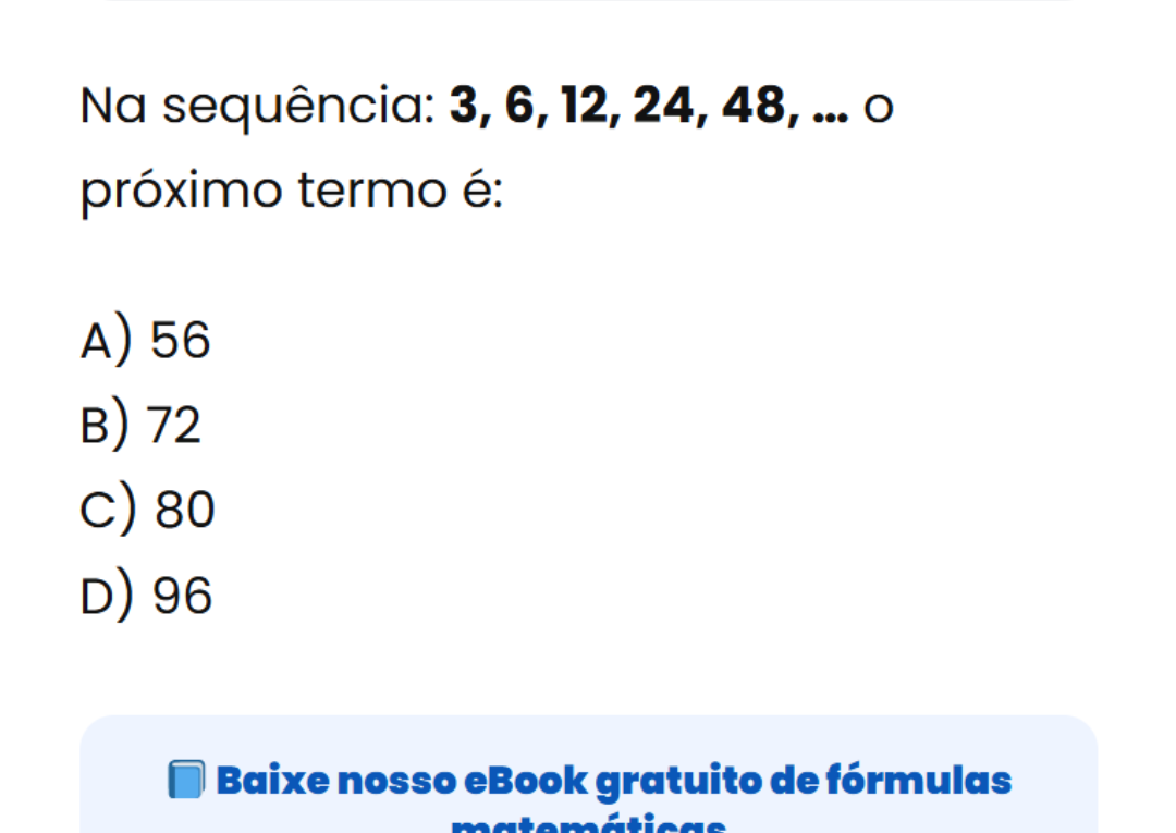 Continue lendoVocê consegue descobrir o próximo número dessa sequência? 🧠📈 Em sequências numéricas, identificar o padrão entre os termos é essencial