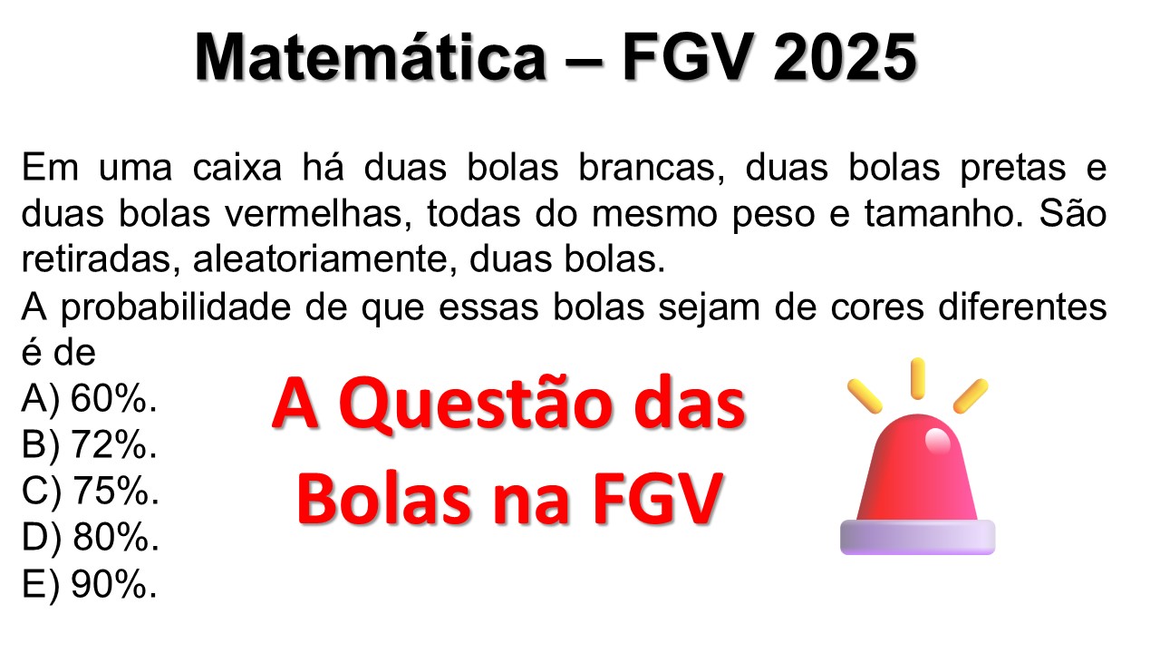 Continue lendoFGV 2025 Matemática | Bolas de Cores Diferentes Matemática – FGV 2025 Conteúdo: Probabilidade sem Reposição Em uma caixa há