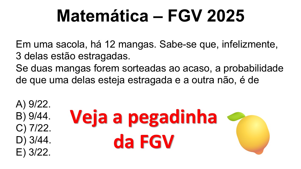 FGV 2025 Matemática | Probabilidade com Mangas Matemática – FGV 2025 Conteúdo: Probabilidade sem Reposição Em uma sacola, há 12