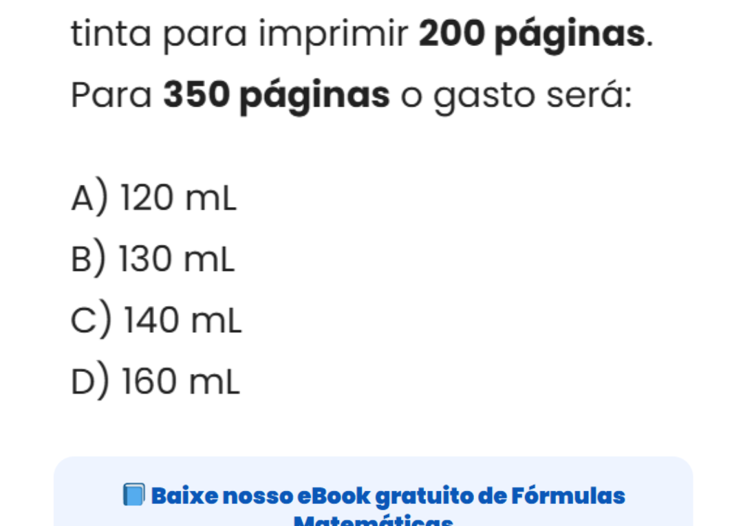 Continue lendoRegra de três: consumo de tinta por páginas Questões de regra de três simples são comuns quando há proporcionalidade direta.