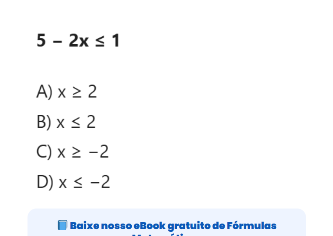 Inequação do 1º Grau Resolvida – 5 − 2x ≤ 1 Passo a Passo