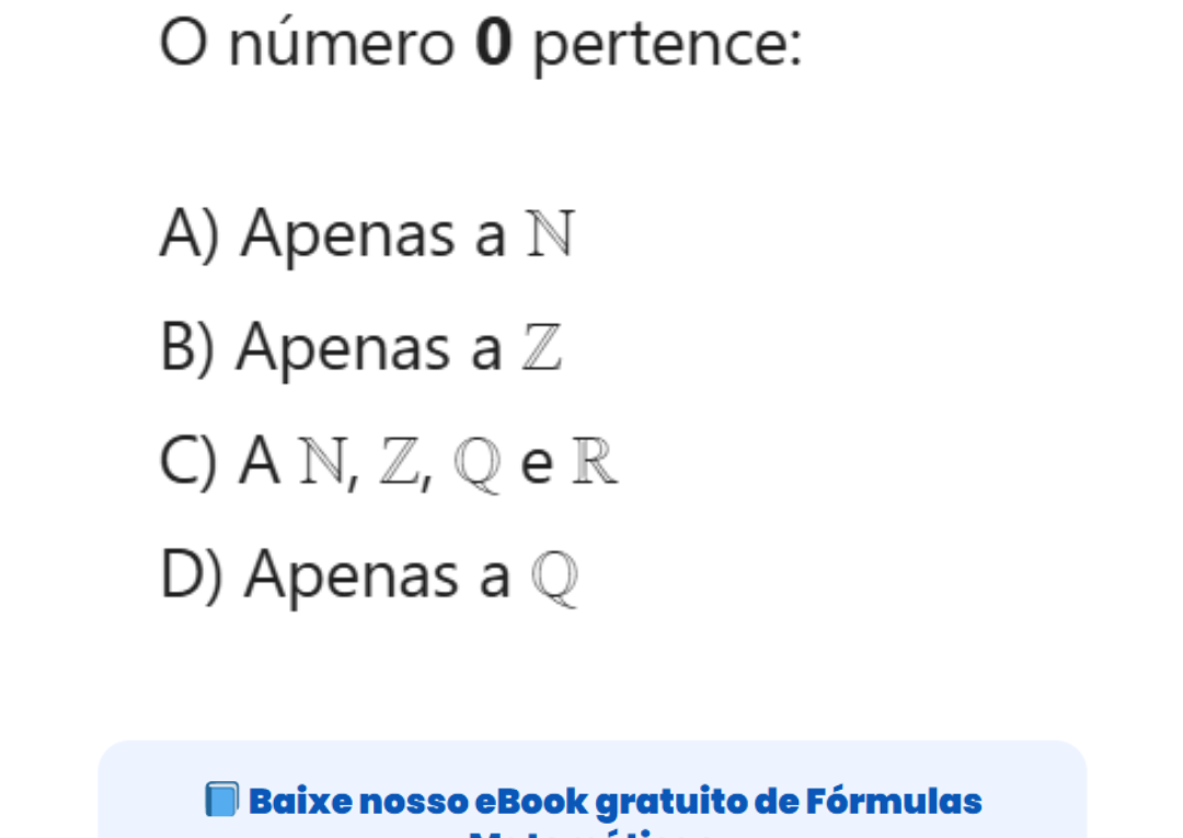 Continue lendoClassificação do Número 0 nos Conjuntos Numéricos Conjuntos Numéricos – Onde o 0 Está? O número 0 pertence: A) Apenas