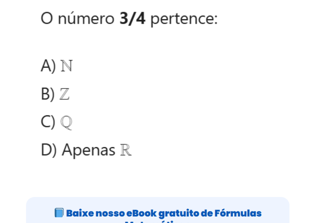 O Número 3/4 Pertence a Qual Conjunto Numérico? Questão Resolvida