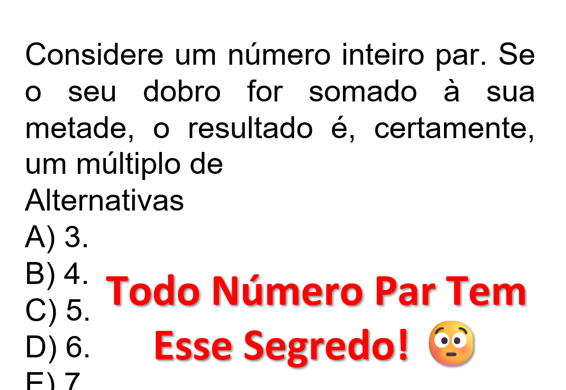 Continue lendoNúmero par – múltiplos (FGV 2025) Matemática – FGV 2025 – Nível Médio Conteúdo: Propriedades dos números inteiros Considere um
