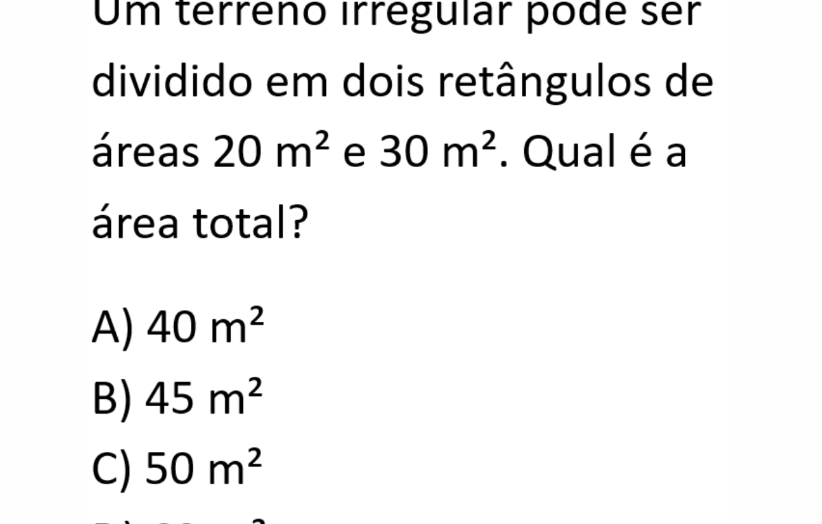Continue lendo🚀 Entrar no Grupo do WhatsApp 📐 Clique para ver o cálculo da área total 1. O terreno foi dividido