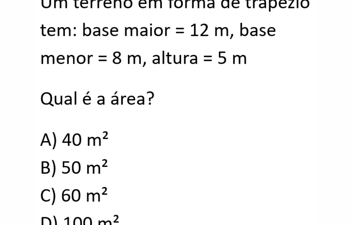Continue lendo🚀 Entrar no Grupo do WhatsApp 📏 Clique para ver o cálculo da área 1. Fórmula da área do trapézio: