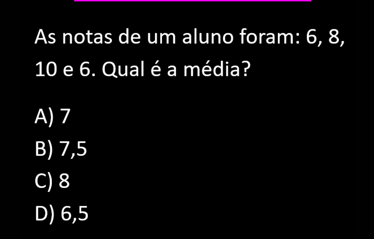 Continue lendo🚀 Entrar no Grupo do WhatsApp 📊 Clique para ver o cálculo da média 1. Somando as notas: 6 +