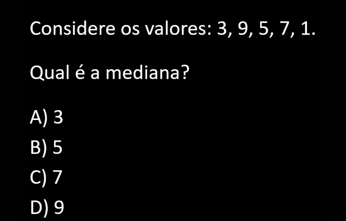 Continue lendo🚀 Entrar no Grupo do WhatsApp 📊 Clique para ver o cálculo da mediana 1. Valores dados: 3, 9, 5,