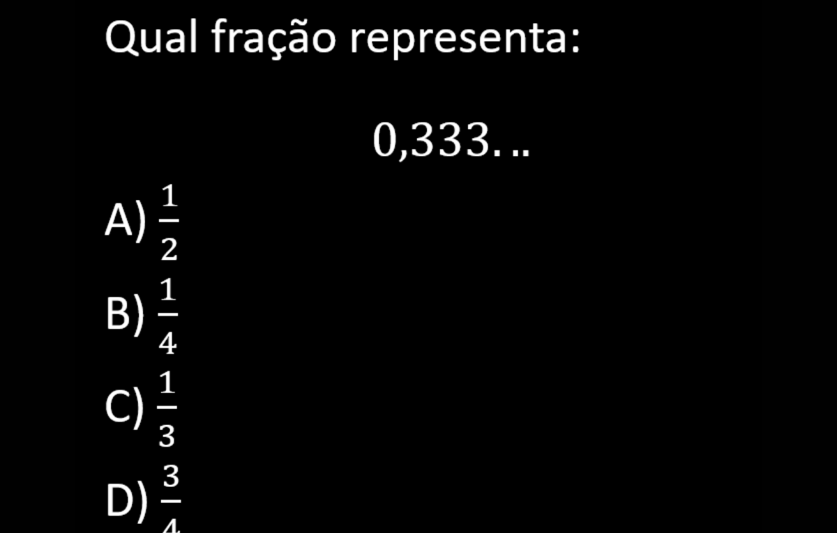 🚀 Entrar no Grupo do WhatsApp 🔢 Clique para ver a transformação em fração 1. Número dado: x = 0,333…