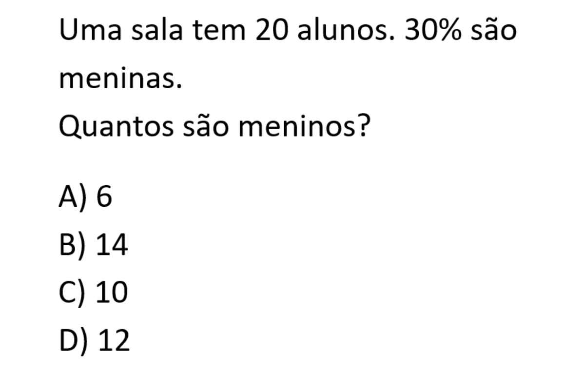 30% de 20: a questão que parece fácil, mas derruba muitos