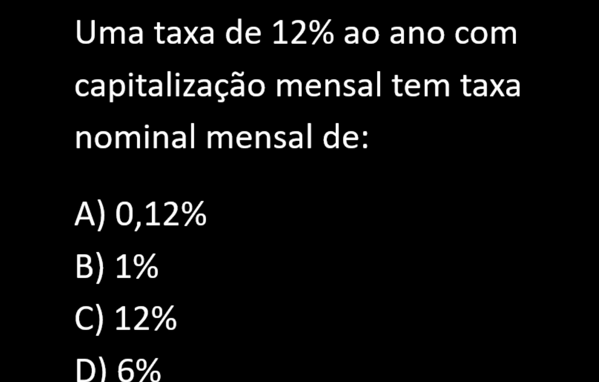 Continue lendo🚀 Receber questões resolvidas todos os dias 🔥 Clique para ver a solução 1. Identificar o tipo de taxa: É
