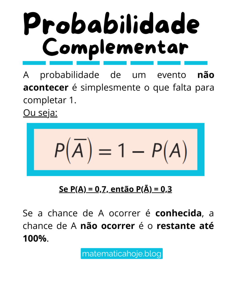 Probabilidade Complementar — Como Calcular o que Falta para 100% Em muitos problemas de probabilidade, é mais fácil descobrir a chance