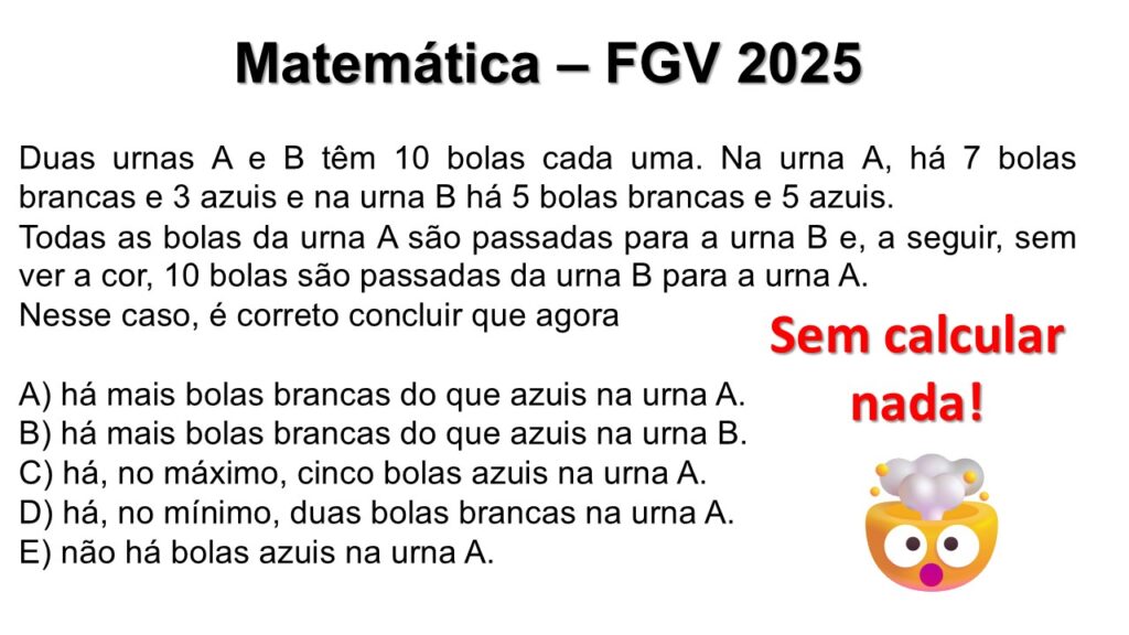 FGV 2025 Matemática: Troca de Bolas entre Urnas (Conclusão Garantida)