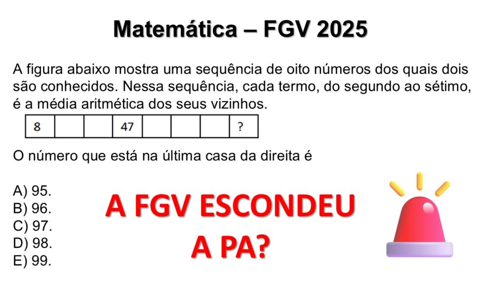 FGV 2025 Matemática: Sequência em que Cada Termo é a Média dos Vizinhos