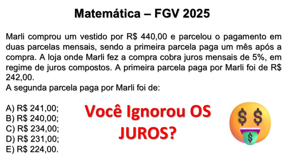 FGV 2025 Matemática: Parcelamento com Juros Compostos (2 Parcelas)