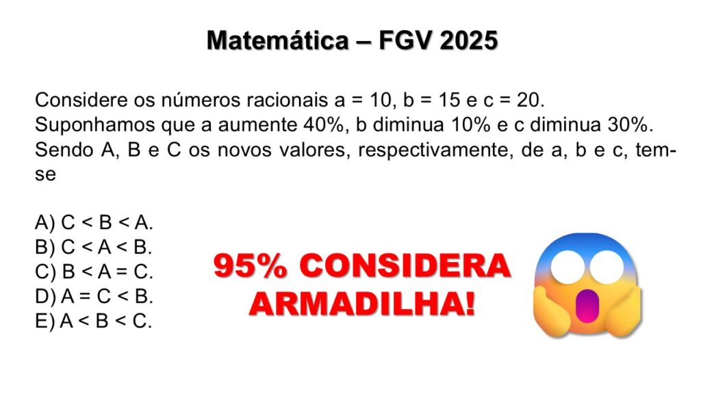 FGV 2025 Matemática: Aumentos e Reduções Percentuais (Comparação de Valores)