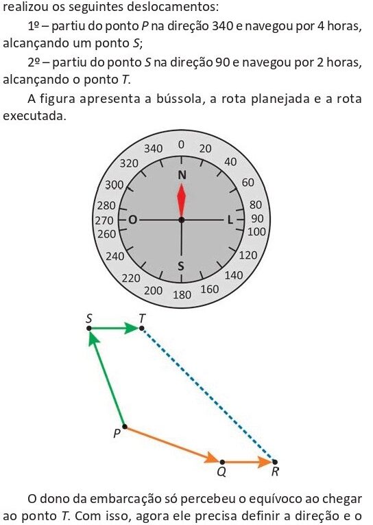 Continue lendoNesta questão de Trigonometria e Vetores do ENEM 2025, o dono de uma embarcação precisa sair do ponto P e