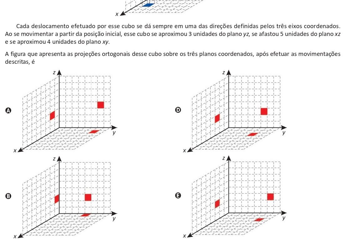 Continue lendoNesta questão de geometria espacial analítica, um cubo é movimentado em um sistema de eixos cartesianos tridimensional, aproximando-se ou se