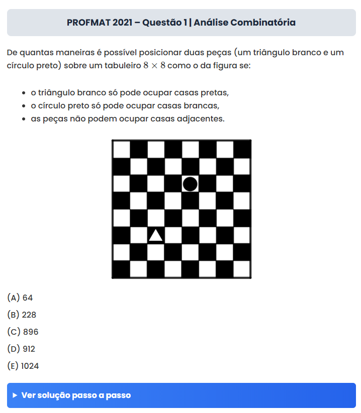 Continue lendoPROFMAT 2021 – Questão 1 | Análise Combinatória PROFMAT 2021 – Questão 1 | Análise Combinatória De quantas maneiras é