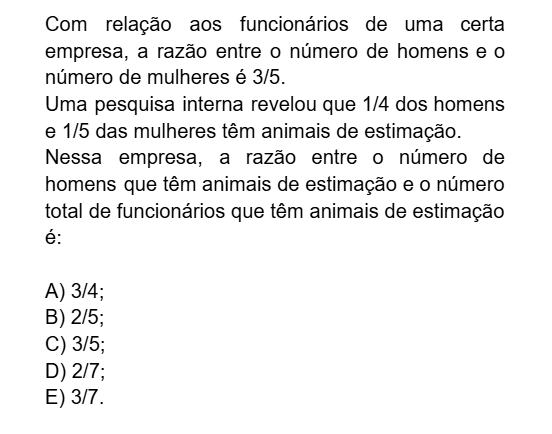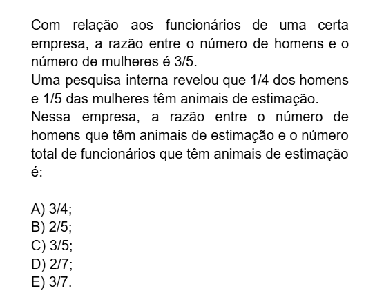 Continue lendoFGV 2025 Matemática | Razão e Frações Matemática – FGV 2025 Conteúdo: Razão e Proporção Com relação aos funcionários de