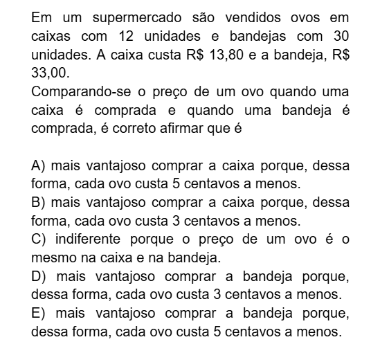 Continue lendoFGV 2025 Matemática | Preço Unitário Matemática – FGV 2025 Conteúdo: Razão, Proporção e Preço Unitário Em um supermercado são