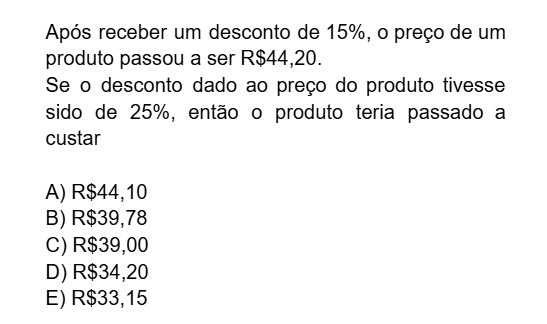 Continue lendoFGV 2025 Matemática | Desconto Percentual Matemática – FGV 2025 Conteúdo: Porcentagem e Descontos Após receber um desconto de 15%,