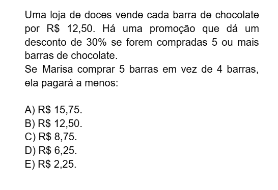 FGV 2025 Matemática: Promoção com Desconto Percentual (Barras de Chocolate)