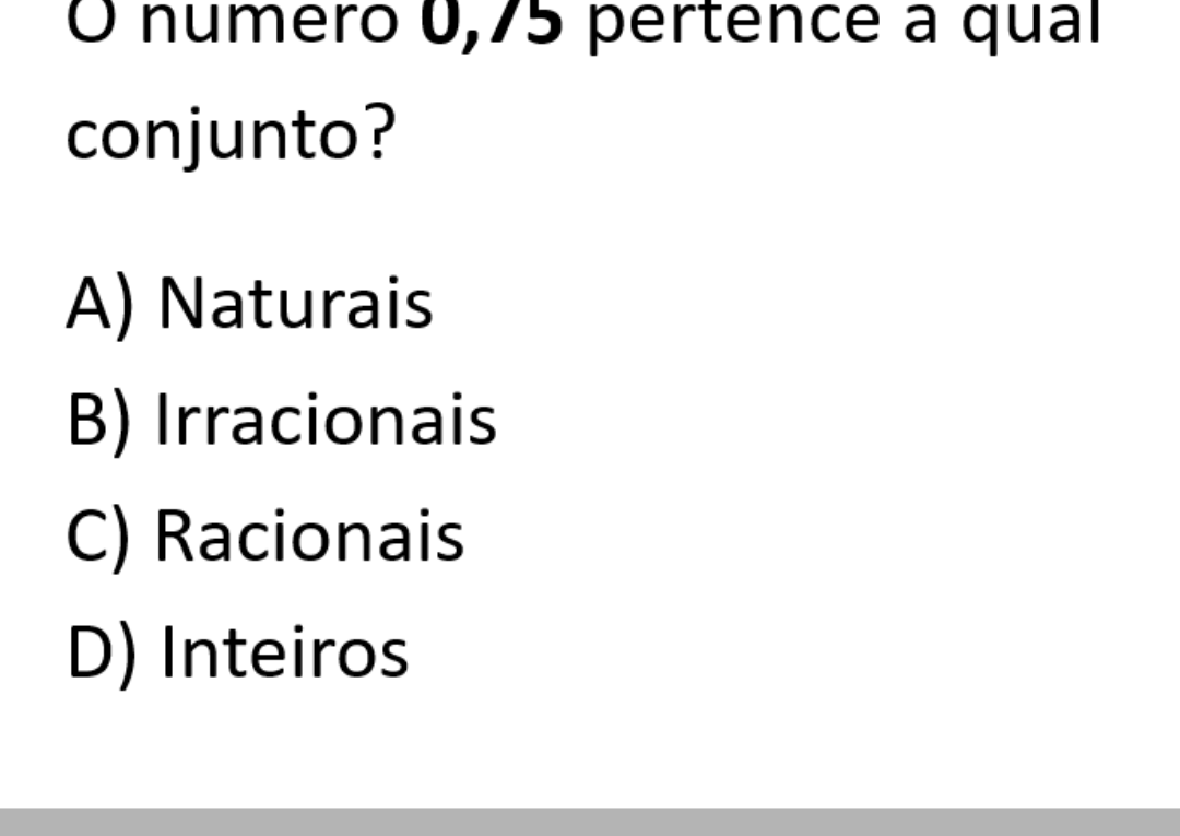 Continue lendoClique aqui para ver a solução O número apresentado é: 0,75 Podemos escrever esse número na forma de fração: \[