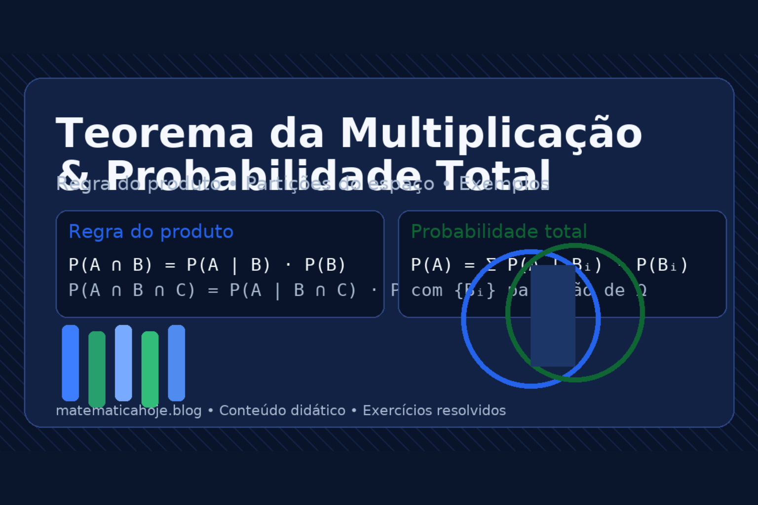 Continue lendoTeorema da Multiplicação e Teorema da Probabilidade Total — Definições, Exemplos e Exercícios Teorema da Multiplicação e Teorema da Probabilidade