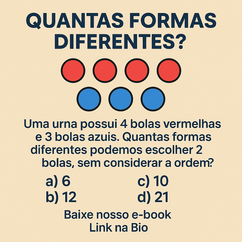 Quantas Formas Diferentes? Enunciado: Uma urna possui 4 bolas vermelhas e 3 bolas azuis. Quantas formas diferentes podemos escolher 2