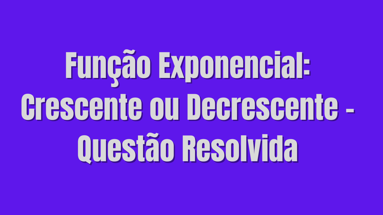 Continue lendoFunção Exponencial: Crescente ou Decrescente – Questão Resolvida Questão 19: Função Exponencial – Crescente ou Decrescente Questão 19. Identifique como