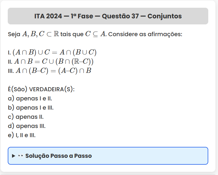 Continue lendoITA 2024 — 1ª Fase — Questão 37 ITA 2024 — 1ª Fase — Questão 37 — Conjuntos Seja \(