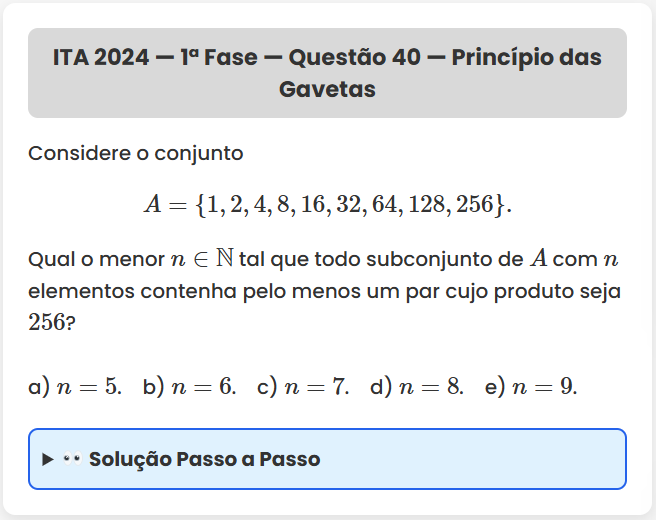 Continue lendoITA 2024 — 1ª Fase — Questão 40 ITA 2024 — 1ª Fase — Questão 40 — Princípio das Gavetas