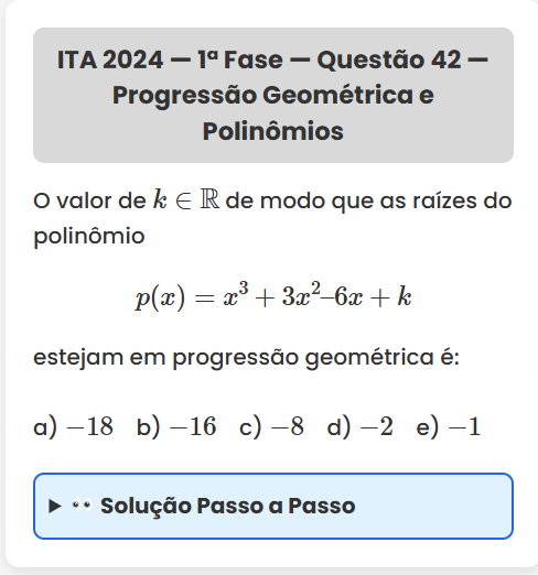 Continue lendoITA 2024 — 1ª Fase — Questão 42 ITA 2024 — 1ª Fase — Questão 42 — Progressão Geométrica e